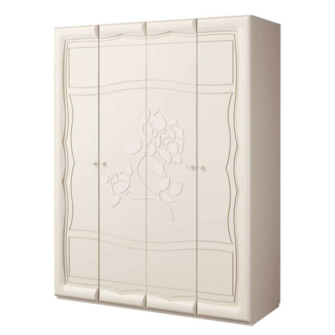 Четырехстворчатый шкаф для одежды в спальню МН-218-03-220 серии Астория от Мебель-Неман заслуживает высочайшей оценки за работу дизайнеров – выдержанный роскошный вид с изящными очертаниями декоров и высокохудожественной сверхточной резьбой сопровождается продуманным и практичным наполнением. Купить изысканный плательный шкаф можно для любых интерьеров «под старину», он дополнит эстетику прованса, шебби-шика и других эффектных стилей.