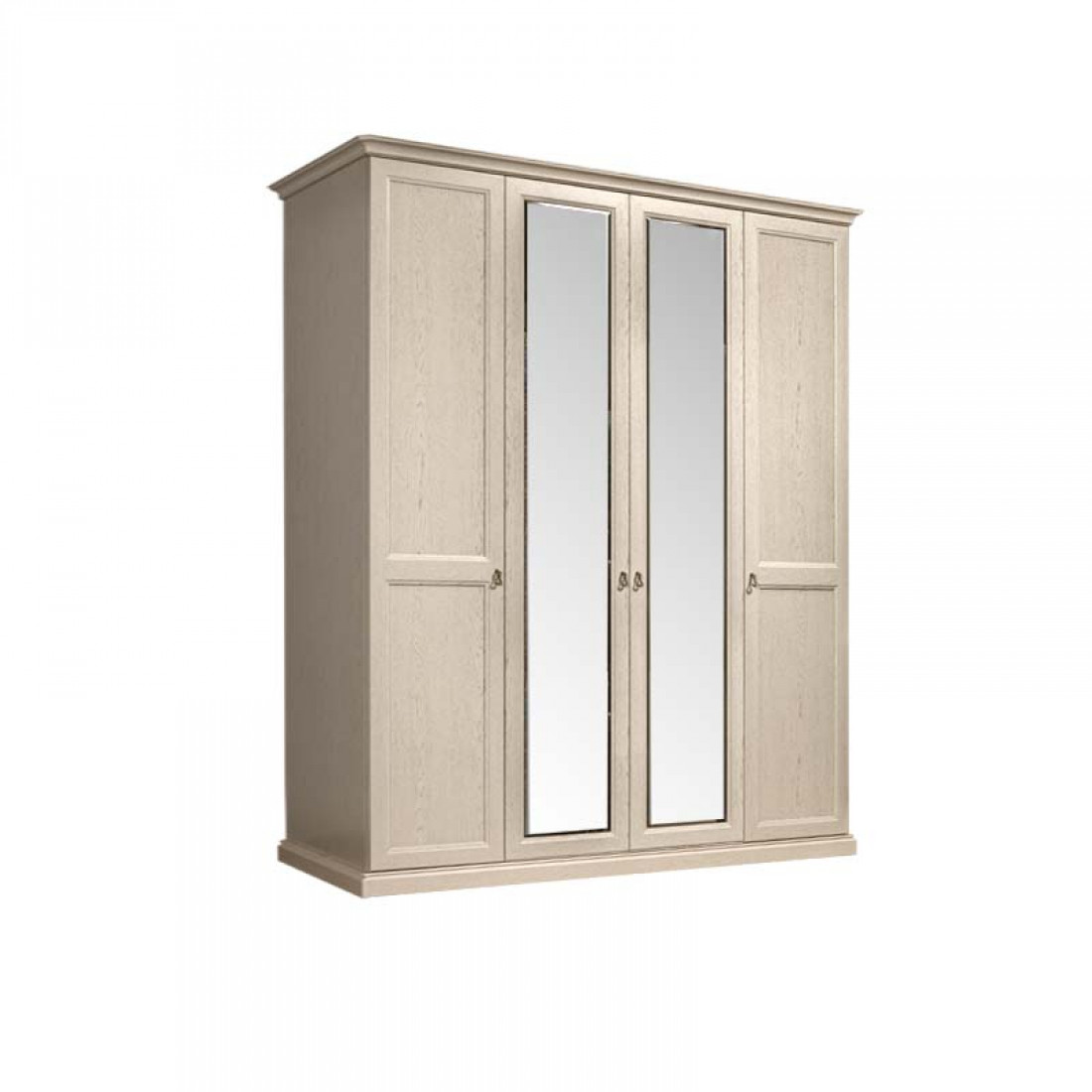Четырехдверный шкаф с зеркалами для платья и белья ВНШ1/4 изготовлен из ламинированной плиты Эггер (Австрия), а также плиты совместного итальянско-российского производства «Карелия ДСП», являющегося лучшим в России производителем мебельных плит, и покрыт итальянским лаком превосходного качества.