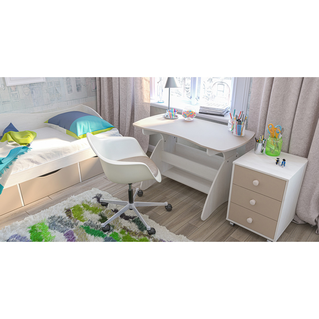 Детская прикроватная тумба с ящиками МН-211-04 серии Комби (Мебель-Неман) действительно многофункциональный предмет меблировки: может служить прикроватной или рабочей, дополняя компьютерный стол, использоваться для хранения любых мелких предметов и игрушек. Купить тумбу по недорогой цене можно отдельно или в составе индивидуально подобранного комплекта мебели из модулей Комби.