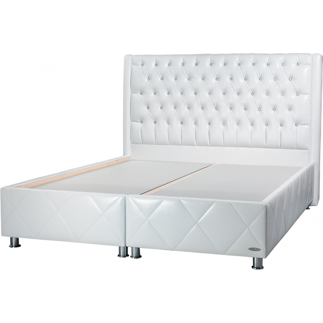 В каркасе спинки применяется плита ДСП толщиной 18 мм, фанера толщиной 15 мм, заглушки - плита ХДФ 3мм, плита МДФ 6мм, брусок п. мат., профиль металлическая труба 20х20х1мм. Настил - поролоновый лист толщиной 20мм, плотность18кг/мз. Чехол - винилискожа декорированный пуговицами, имитация стразы Swarovski. Вы можете заказать спинку в одном цвете с кроватью.
