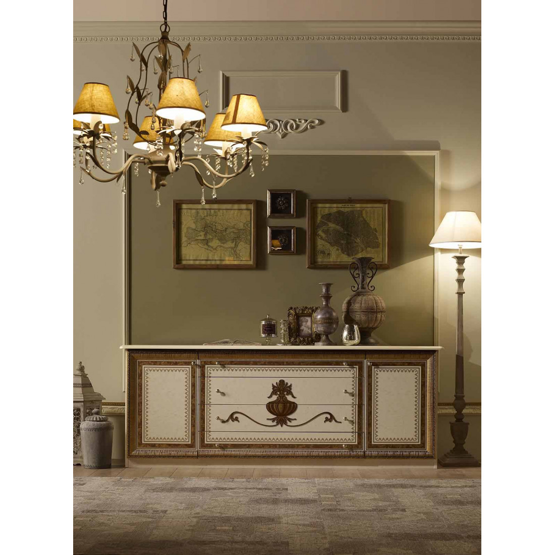 Гостиная Анита (бежевый глянец) #3 от Российской фабрики «ДИА мебель» Выполнена в цвете бежевый глянец с отделкой золотых фасадов. Классический стиль придают интерьеру неповторимую уникальность и роскошь. Изгибающиеся линии придают легкость и воздушность гостиной либо столовой. Коллекция "Анита" придаст вашему дому экстравагантность и принесет свежие нотки.