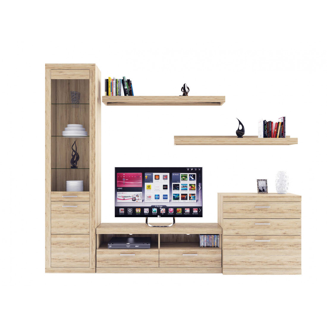 2. 4 варианта тумб RTV с выдвижными ящиками на шариковых направляющих. 2 размера надставных полок для RTV-тумб (полка TVB и полка TV), позволяющих установить выше телевизор. Варианты навесных полок, соответствующих по размеру тумбам для телевизора. Тумба RTV 2S2NL имеет глубину 351 мм, что позволяет составить модули, имеющие такую же глубину, в одну линию без выступающих элементов.