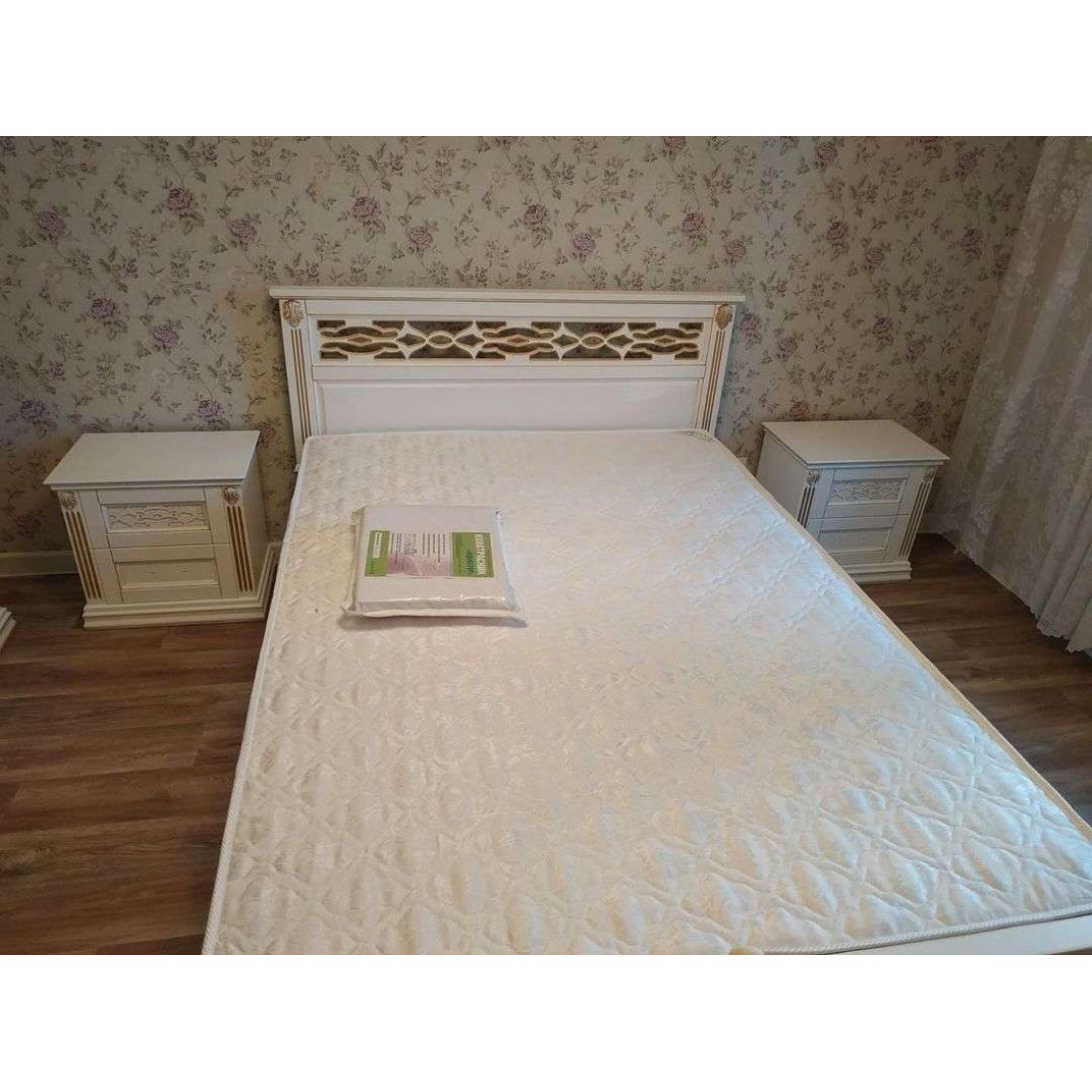 Кровать оснащена ортопедическим основанием для матраса — гнутыми ламелями.