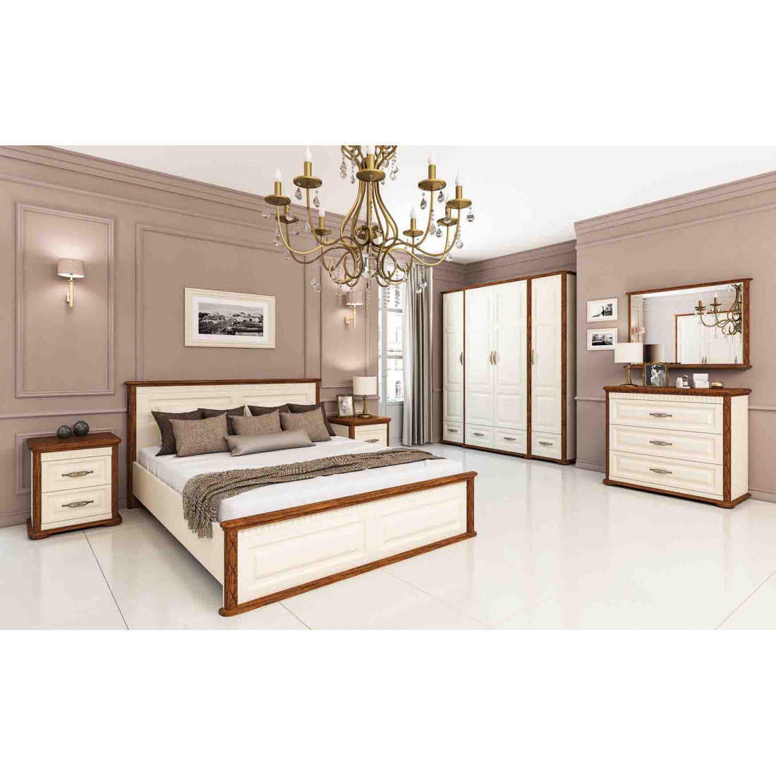 Роскошный четырехстворчатый шкаф для одежды и белья МН-126-04 в спальню новой серии Марсель (Мебель-Неман) выполнен в светлом кремовом оттенке в комбинации с цветом "дуб кантри", является настоящим подарком производителя. Купить шкаф можно для комплекта полного спального гарнитура Марсель с другими элементами серии или отдельно.