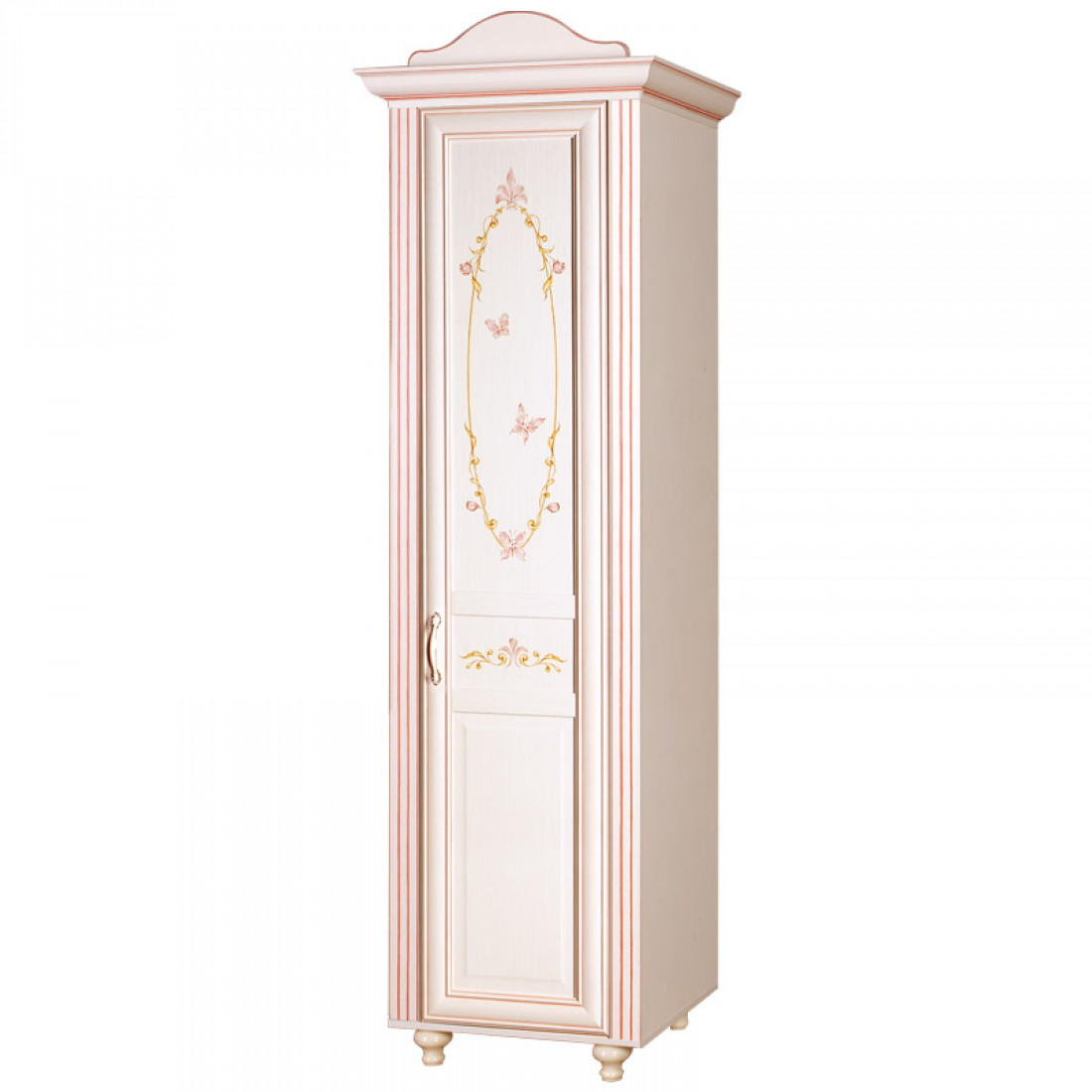 Фасады: МДФ, декор – кремовый белый, рисунок, патина, стекло с фацетом и рисунком