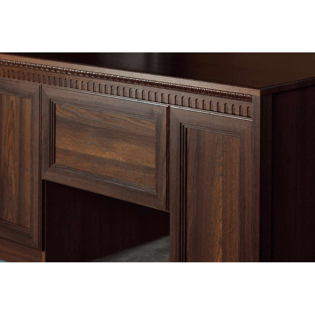 Фасады: МДФ, декор – дуб оксфорд, патина, зеркало с фацетом