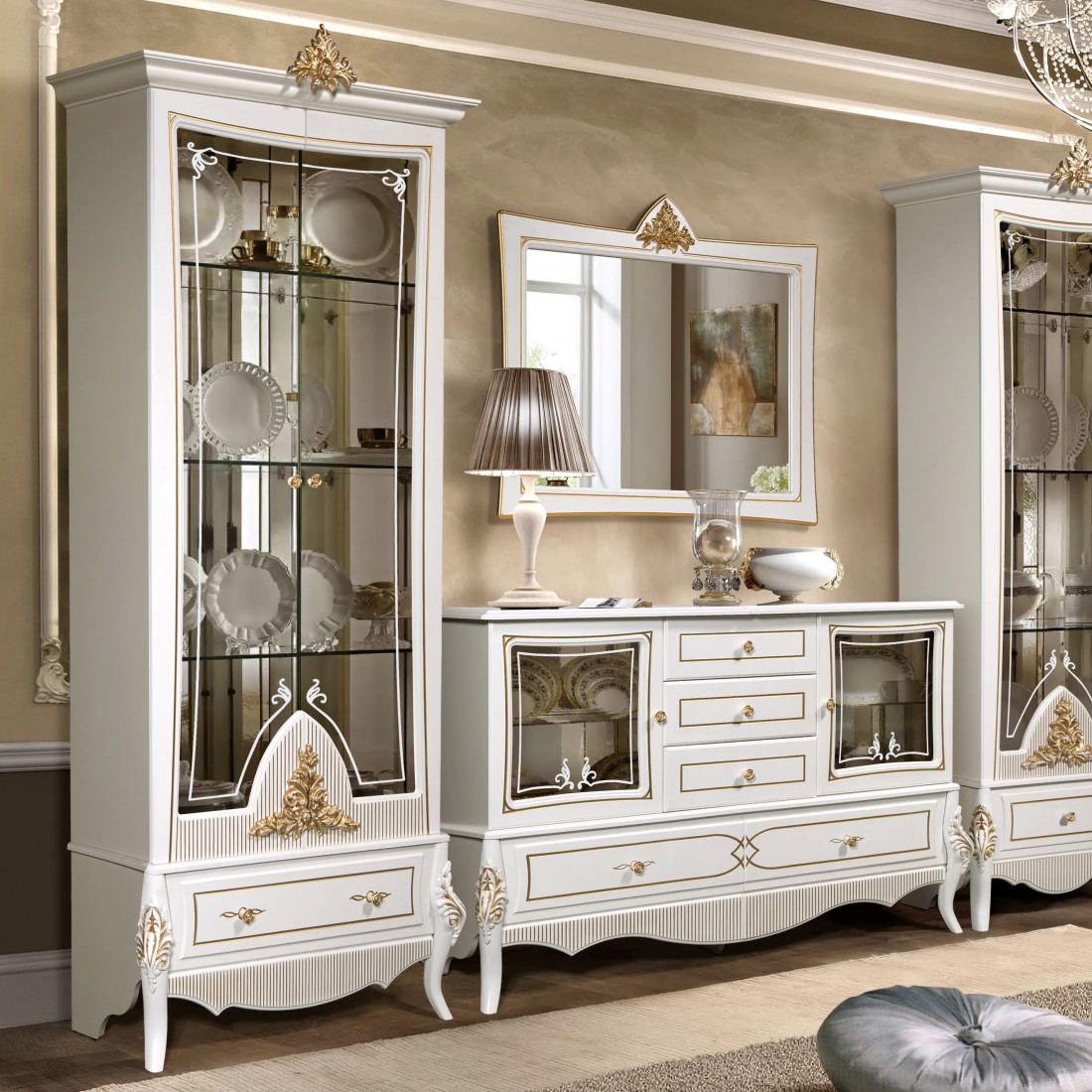 Витрина 2-х дверная в гостиную Стелла (белый золото)